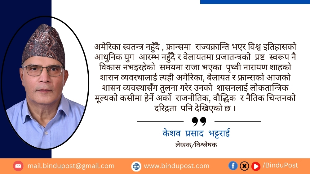 २०८१ मंसिर २५ गते मंगलवारसंसारभरका क्रिश्चियनहरूको आस्थाको केन्द्र भेटिकन र इस्लामको केन्द्र साउदी अरबको मक्का भएजस्तै विश्वको एक मात्र हिन्दु राष्ट्र्को रूपमा नेपाल संसारभरीका हिन्दुहरूको आस्था र सम्मानको केन्द्र थियो र त्यो एक किसिमले नेपालको बलियो सुरक्षा कवच थियो।