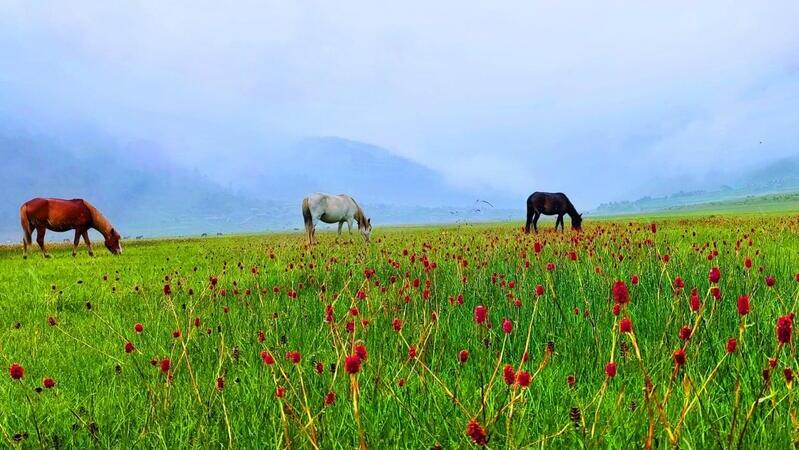 ढोरपाटन (बागलुङ), ३० असारः यतिबेला ढोरपाटन उपत्यकामा ढकमक्क फूलेका वनफूलले ढाकिएको छ । राता, पहेँला, बैजनी, गुलावी रङ्गमा फुलेका फुलसँगै हरियाली बनेको समथर मैदानले आन्तरिक तथा बाह्य पर्यटकको ध्यान खिचेको छ । एक दशक अगाडिसम्म ढोरपाटन घुम्न पुग्ने पर्यटक निकै कम थिए । जनैपूर्णिमामा ढोरबहार मन्दिरमा पूजा गर्न आउने भक्तजनबाहेक अन्य पर्यटक कमै पुग्थे । दर्शनका लागि पुगेको भक्तजनलाई फाँटैभरी फूलेको वनफूलले छुनै सकेको थिएन ।