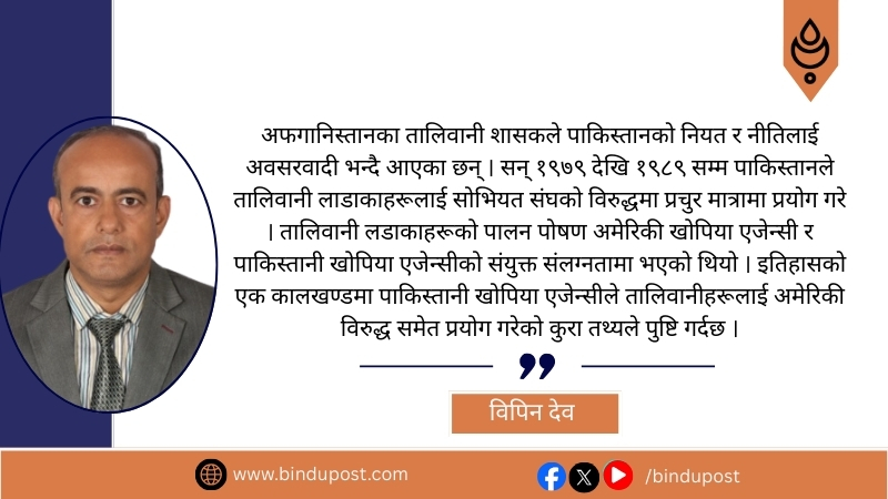 ५ चैत्र, २०८२, बिहिवारतालिवानी लडाकाहरूको पालन पोषण अमेरिकी खोपिया एजेन्सी र पाकिस्तानी खोपिया एजेन्सीको संयुक्त संलग्नतामा भएको थियो ।
