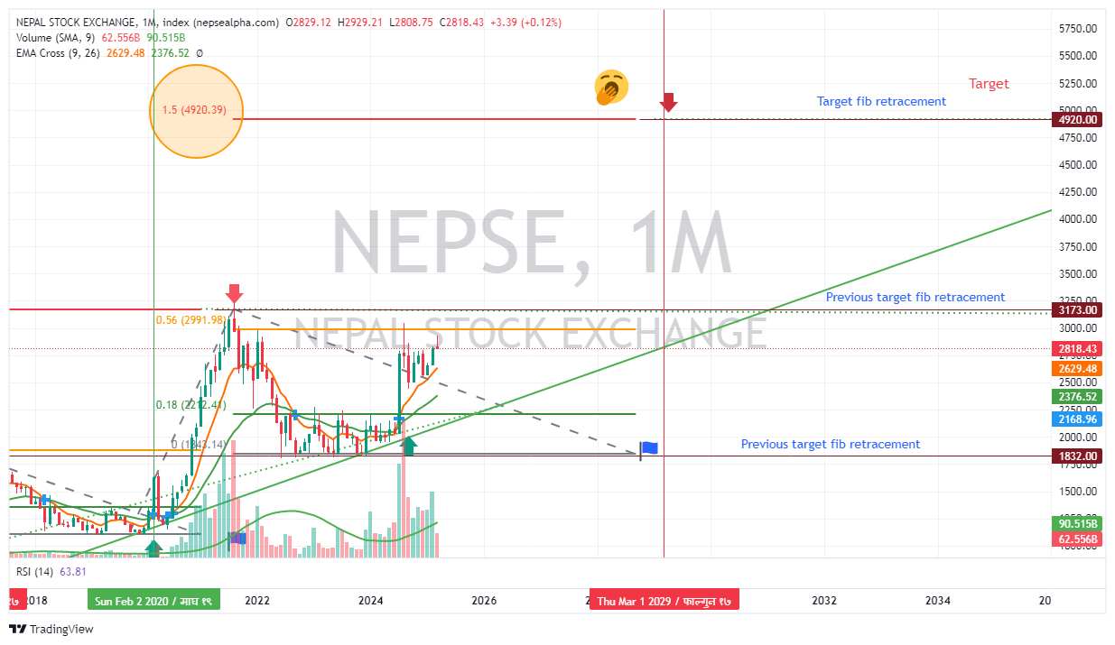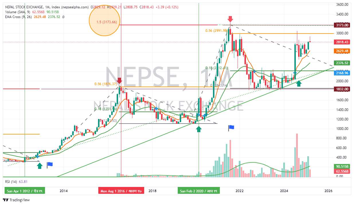 • २०२३-२०२४: बजारले Fib 0.18 (2212.4) मा समर्थन लिएको देखिन्छ।